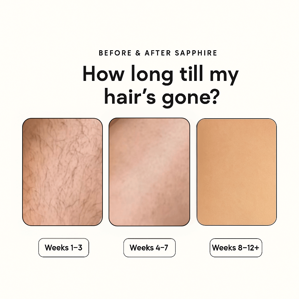 During this stage, your skin will be silky smooth and virtually hair-free. Most people have little to no hair growth left by the time they reach 12 weeks of treatment.